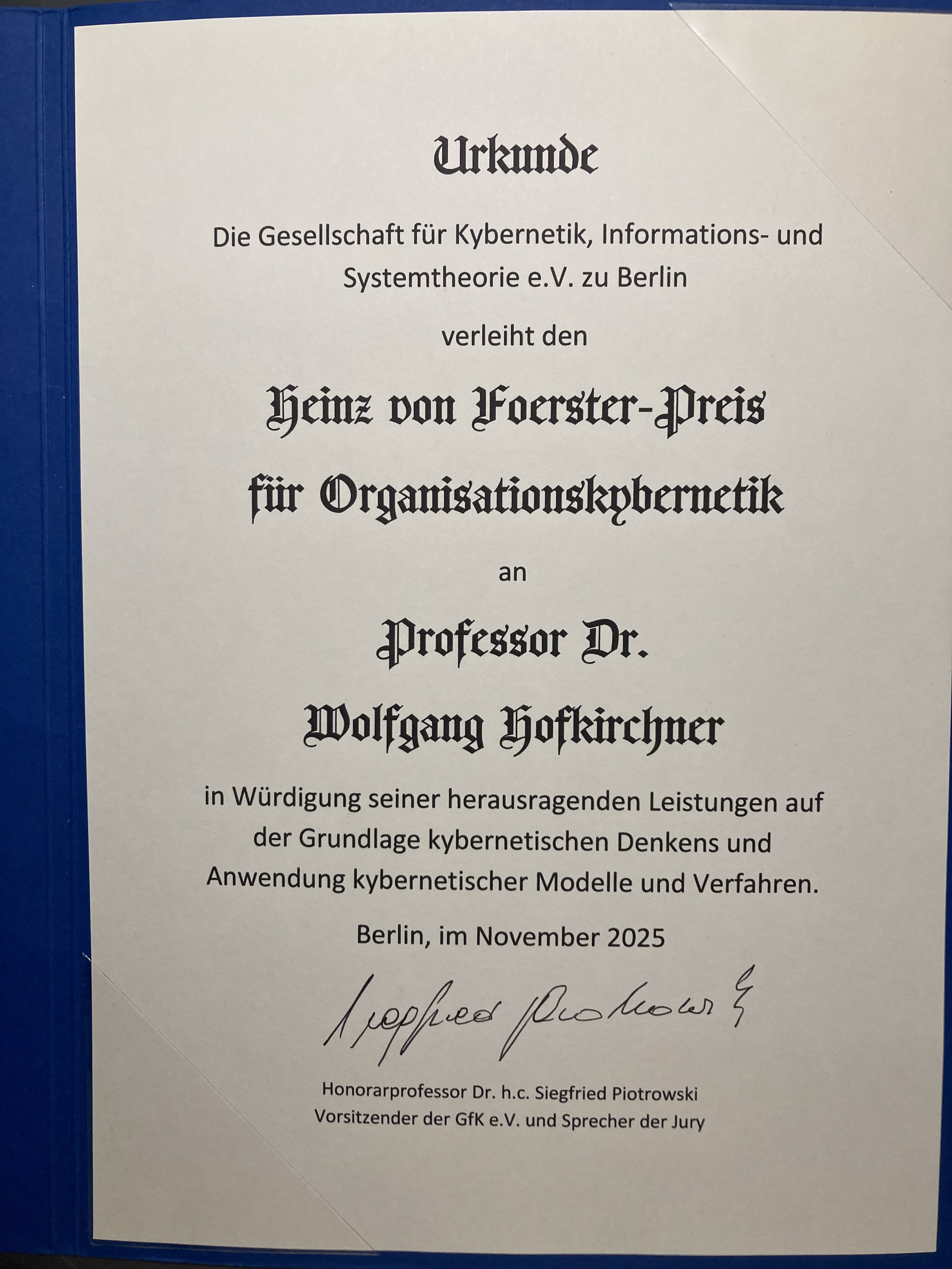 Heinz von Foerster Prize (awarded on 13 November 2025)